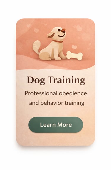 Professional grooming, training, boarding, and walking services for your beloved pets.